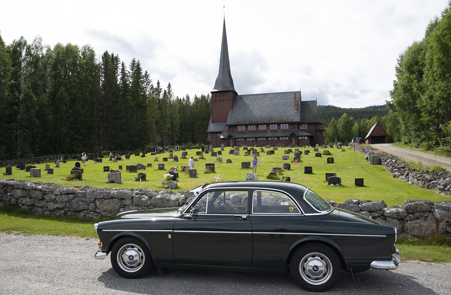 We volgen de 245 naar het noorden. Dat meer op rechts duurt echt eindeloos. Het gaat – maar – door… Tachtig km om precies te zijn. En halverwege stuiten we in Ringelia (het mag eigenlijk geen naam hebben) op de Skute Kirke; een houten kerk geopend in 1915.