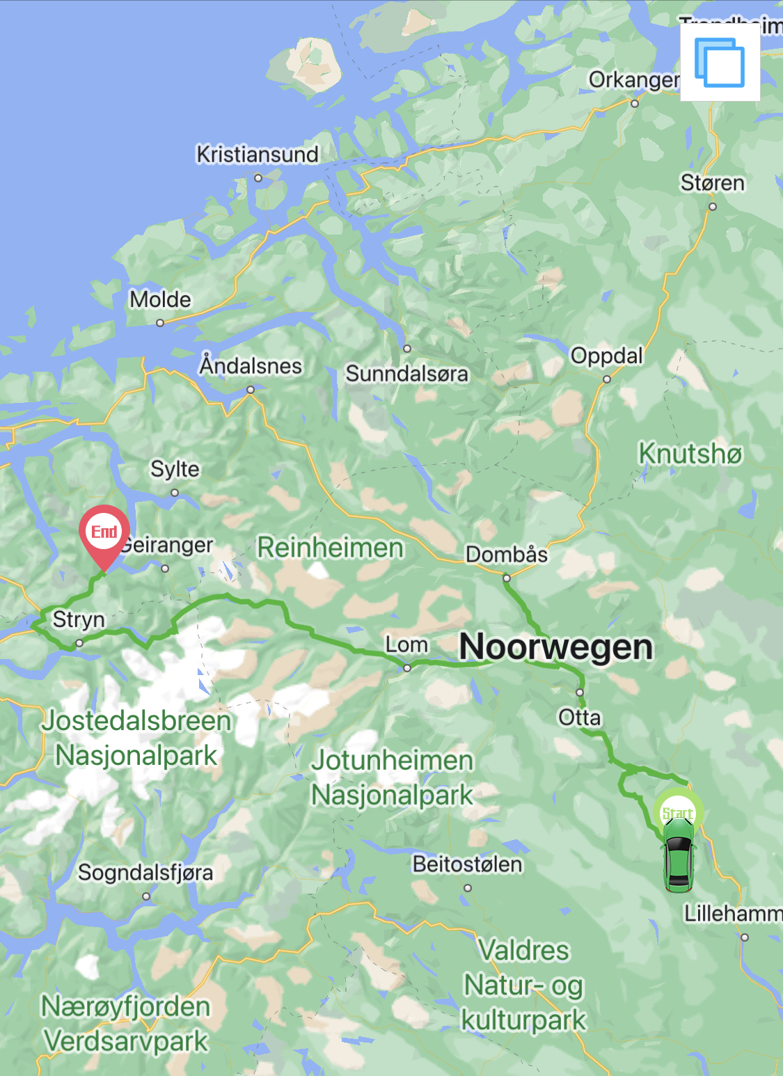 We beginnen de dag grijs en nat. Dat belooft niet veel goeds. Ook de buienradar is niet optimistisch. Maar… Noorwegen zou Noorwegen niet zijn… De Peer Gyntvegen vroeg op gereden. En wat een schoonheid!
