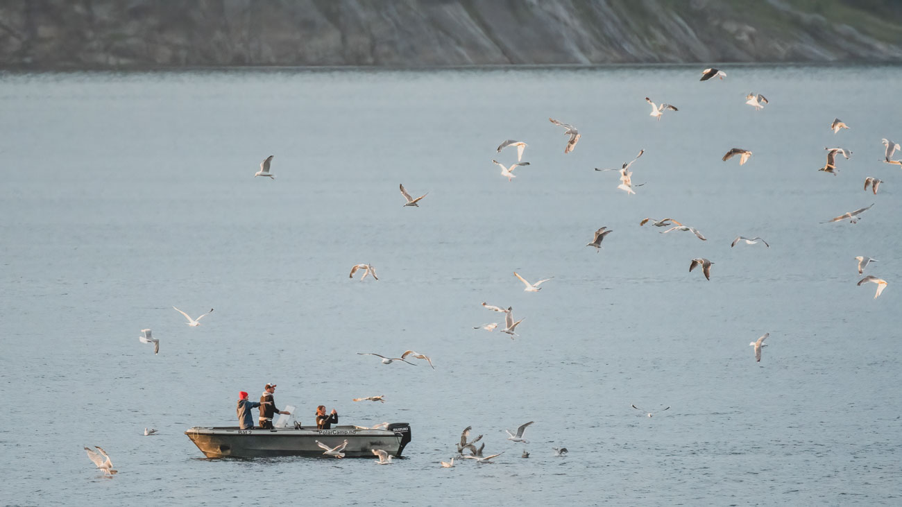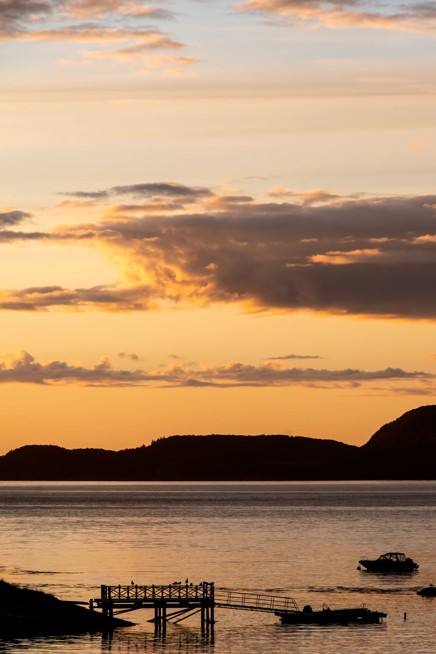 Het wordt laat gisterenavond. We kunnen maar geen afscheid nemen van de zonsondergang die eindeloos duurt. Onze hytte kijkt uit over de fjord en het licht is zo mooi! We schieten plaat na plaat met camera en telefoon. Om 23:30, de zon is net onder en zal spoedig weer opkomen, kruipen we toch maar onder de wol. Joop kan er zó geen genoeg van krijgen dat hij om drie uur, als de natuur hem uit bed stuurt, de zonsopgang nog even meepikt.