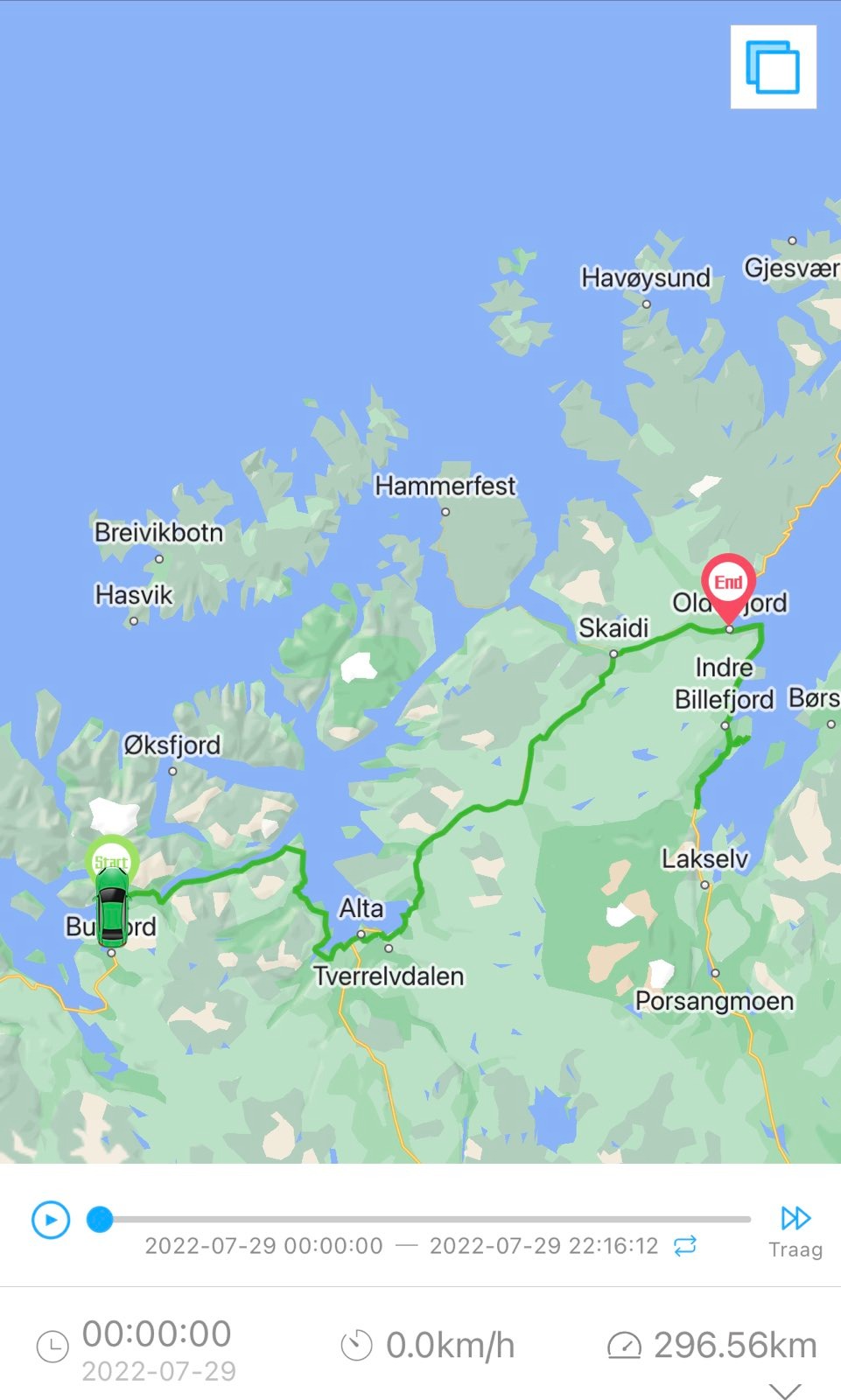 220729 Wie maakt dat nou mee; met zomerse temperaturen en in de volle zon rijden we de op een na laatste etappe voor we de Noordkaap bereiken! Oké, we zijn zeker niet de enigen die die mazzel hebben, maar we doen soms even net alsof de wereld hier uitgestorven is. We stoppen veel (bijvoorbeeld voor de Northernlight Cathedral in Alta), maken foto’s of het een lieve lust is en nog steeds zijn we vroeg op de plaats van bestemming. Tijd voor een beetje off the road sightseeing en een “simple Norwegian meal”.